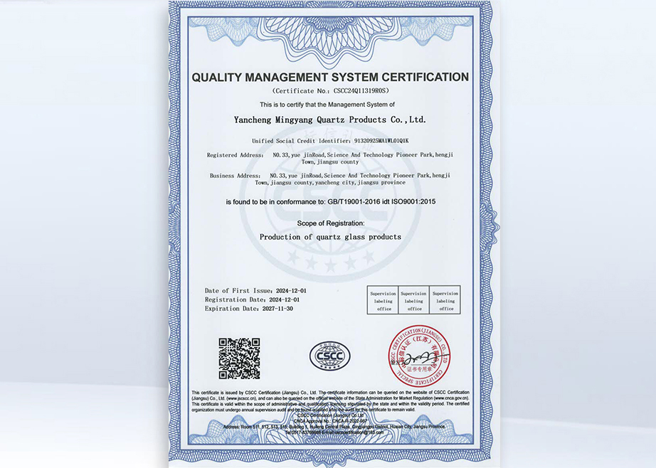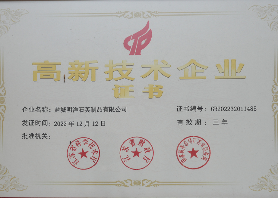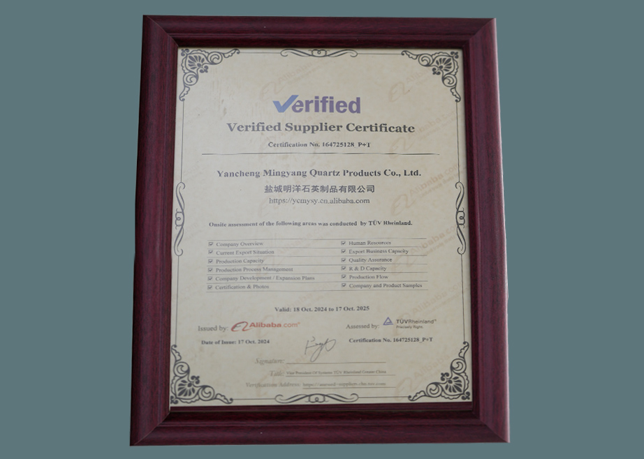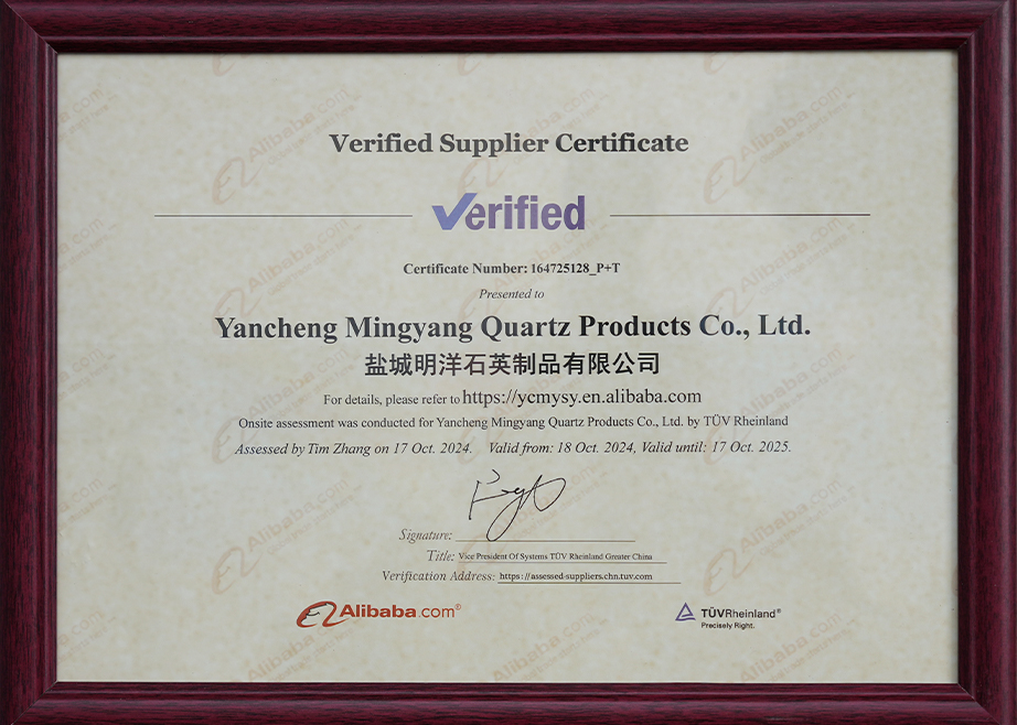 Yancheng Mingyang Quartz Products Co., Ltd. هي شركة متخصصة في إنتاج الكوارتز والمنتجات الزجاجية الخاصة. Yancheng Mingyang Quartz Products Co., Ltd. هو مصنع إنتاج شركة Jinzhou Mingde Quartz Glass Co., Ltd. في جيانغسو، منذ تأسيسها، تطورت الشركة بسرعة، وقدمت التكنولوجيا المتقدمة ومعدات الإنتاج في الداخل والخارج، وقامت باستمرار بتحسين جودة المنتج وتحسينها. بالاعتماد على مزاياها الخاصة، قمنا بتطوير مجموعة متنوعة من المنتجات المناسبة للسوق وتلبي احتياجات العملاء المختلفين، وقمنا بحل العديد من مشاكل الإنتاج العاجلة لعملائنا.